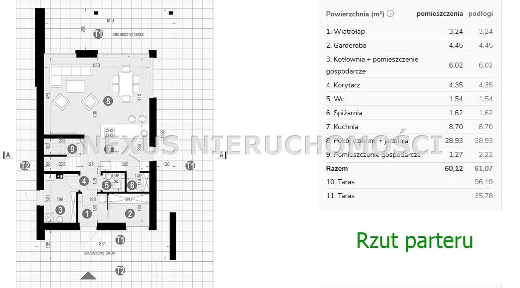 8. Pokój dzienny + jadalnia: 28,93 mkw,