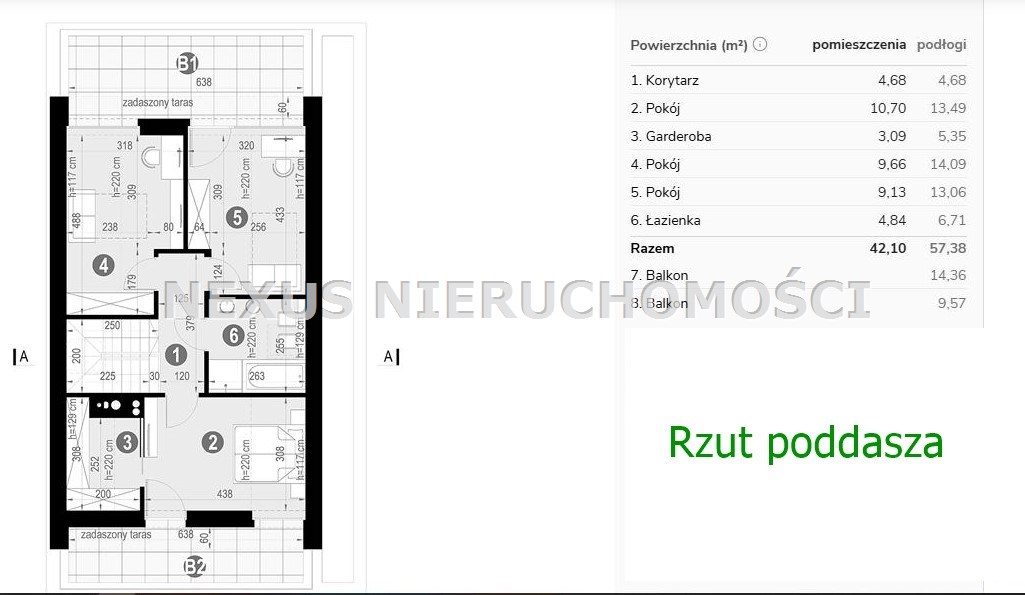 5. Pokój: 9,13 mkw, podłoga 13,06,