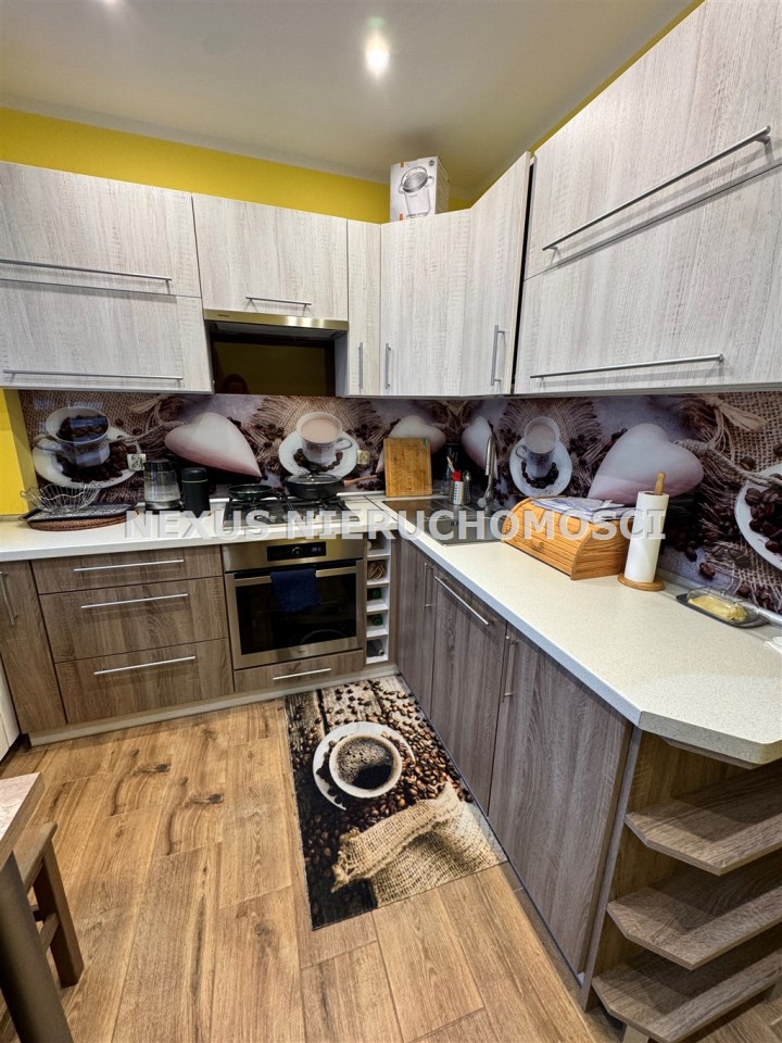 W cenie mieszkania pozostaje całe wyposażenie widoczne na zdjęciach oprócz stołu z krzesłami, mebli w pokoju dziecięcym i suszarki.