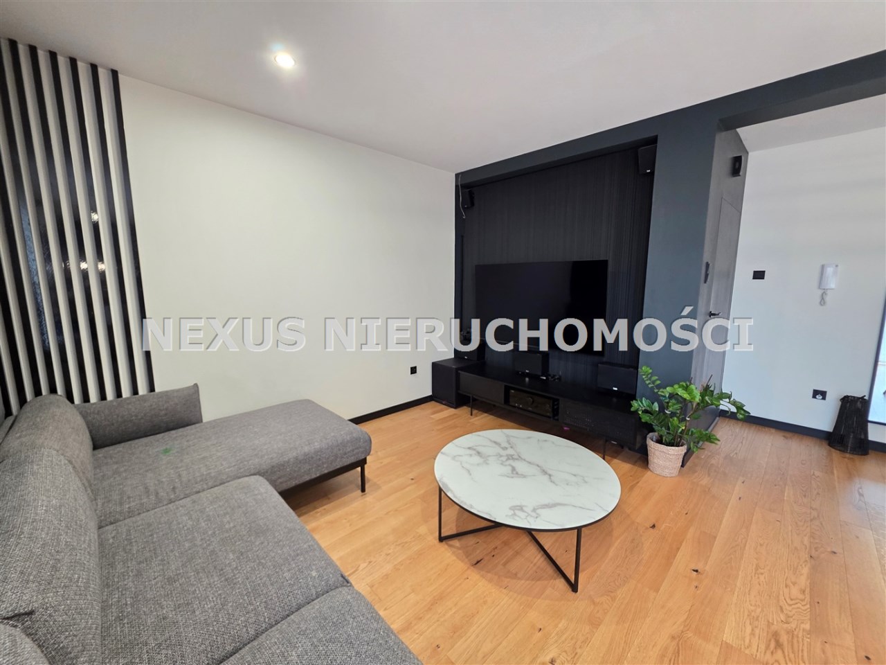 Przestronny salon z aneksem kuchennym i wyjściem na duży balkon, dwie niezależne, ustawne sypialnie, nowoczesna łazienka z kabiną prysznicową. W łazience podgrzewana podłoga pod prysznicem, oświetlenie LED, roleta z drewna bambusowego, zabudowa stelaża GROHE, miska wc Grohe Vortex, armatura termostatyczna GROHE.