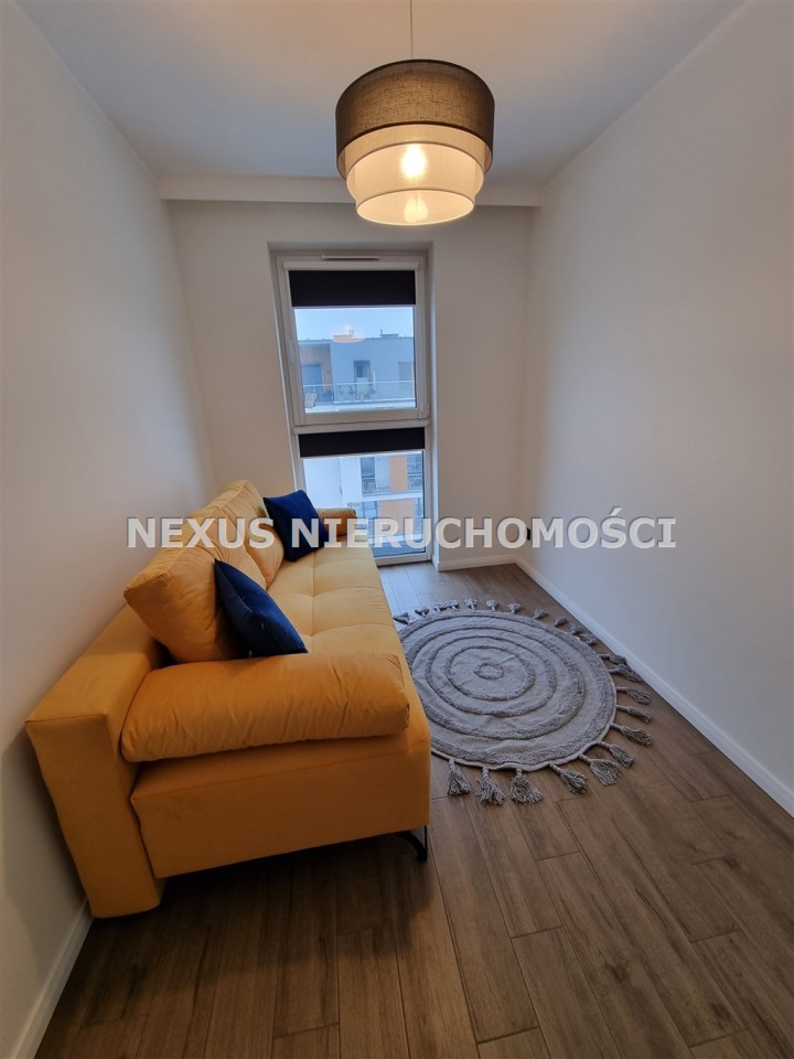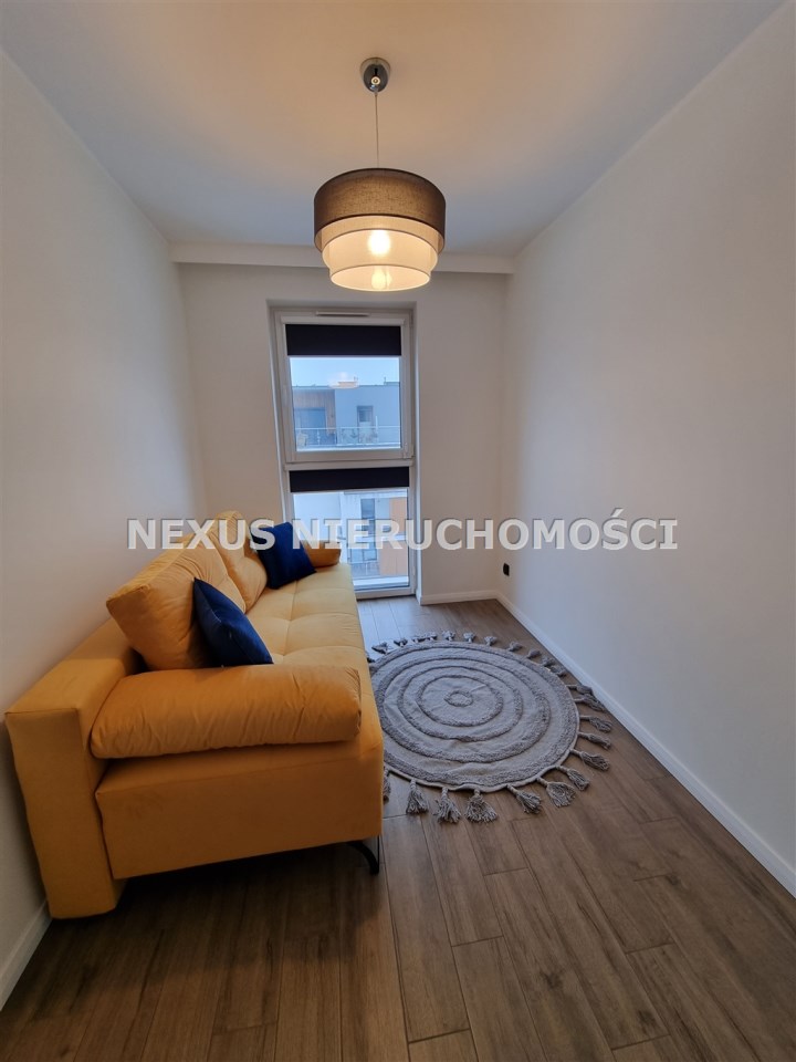 Mieszkanie wynajmowane jest z wyposażeniem widocznym na zdjęciach: zabudowa kuchenna, kanapa w salonie, kanapa w sypialni, komody oraz szafa w przedpokoju.